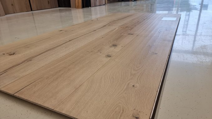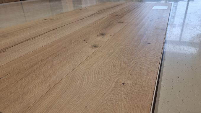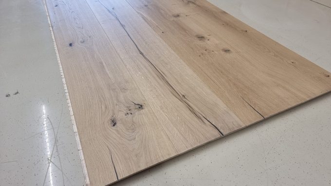 Eiche Schlossdiele Handgehobelt Transparentgeölt gebürstet,rustikale Ausführung mit schwarz verspachtelten Ästen und Rissen, Click 1A Qualität.