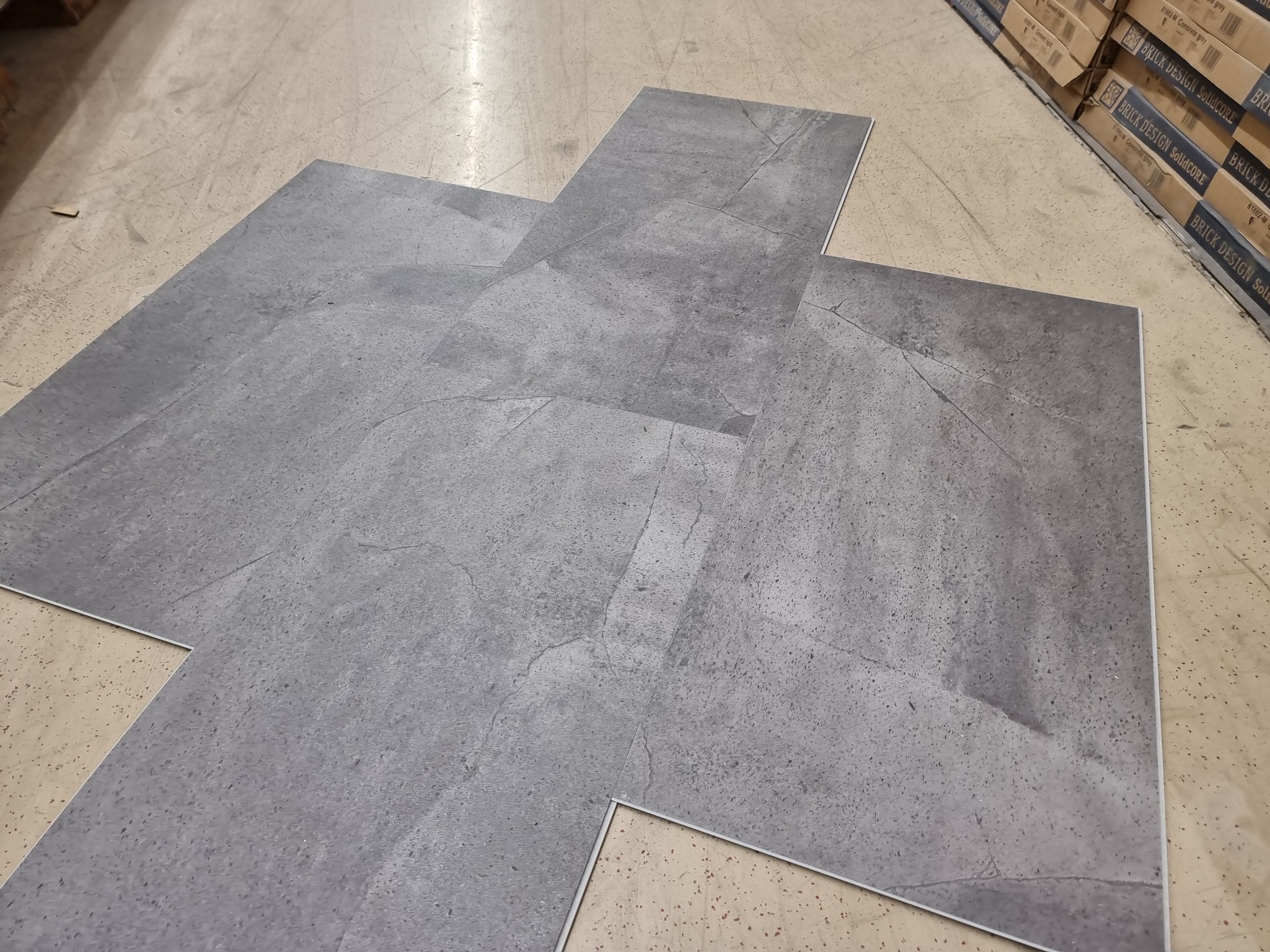 Vinylboden Fliesenoptik Beton Grau integrierte Trittschallunterlage XS Format 61×30 cm